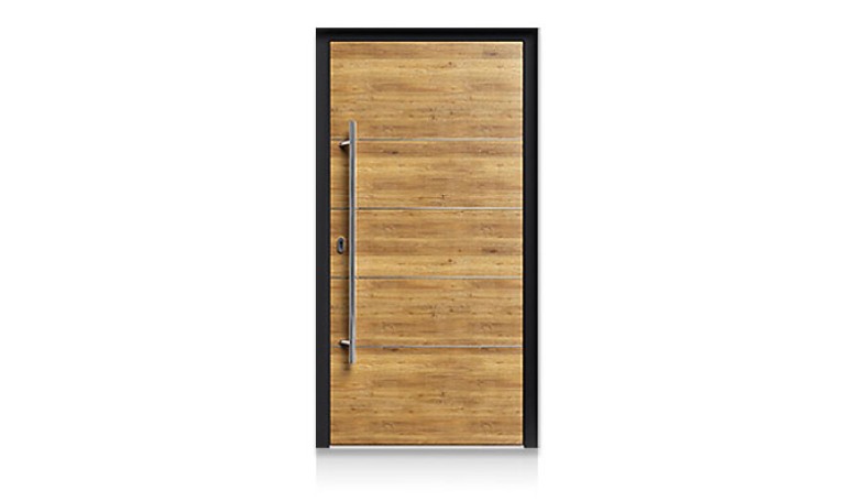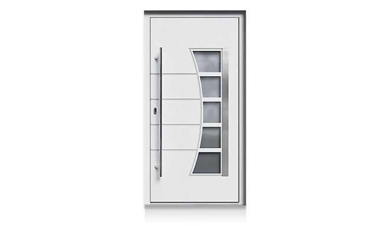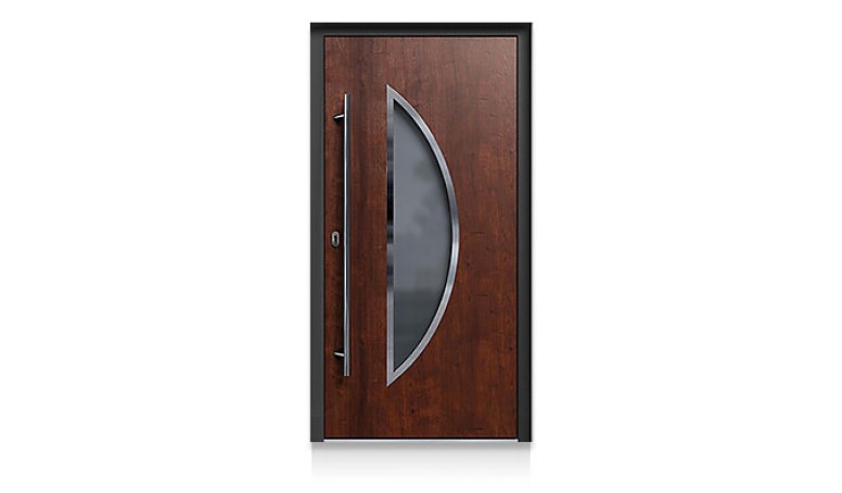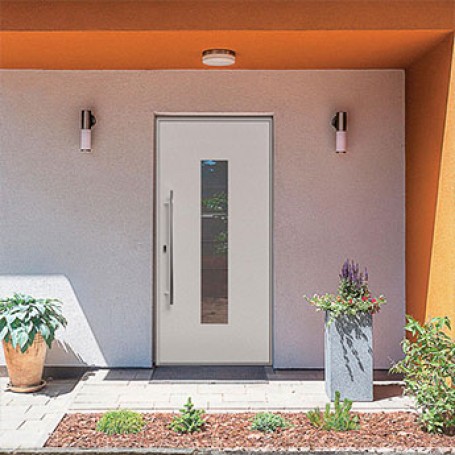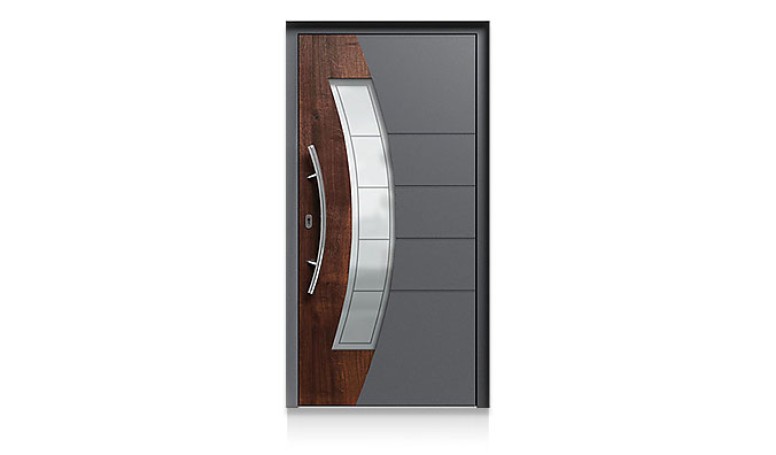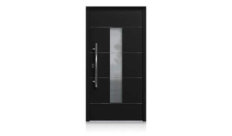 Wir bieten wärmegedämmte, witterungsbeständige Aluminium-Haustüren, die nach Maß gefertigt werden. Statt einer Verglasung kommt ein spezielles Dekorpaneel mit einer Stärke von bis zu 70 mm zum Einsatz – individuell konfigurierbar je nach Türprofil.