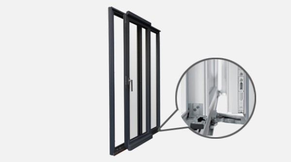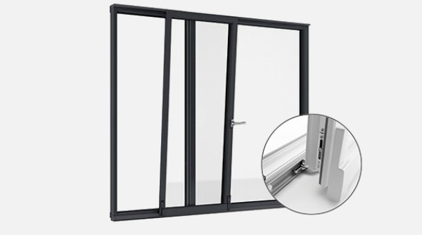 Hebe-Schiebe-Türen wie REHAU GENEO HTS: Der Flügel wird zuerst angehoben, dann zur Seite geschoben. Hochwertiges System für große Glasflächen.